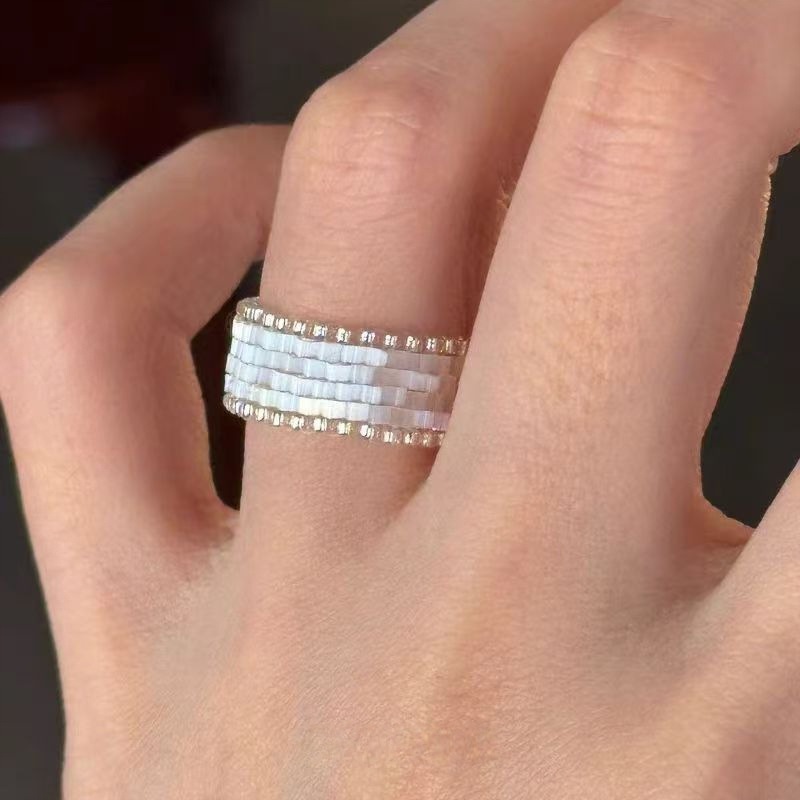 Elegant handmade glaze bead string ring featuring a retro minority design, crafted as a high-grade accessory for women.
