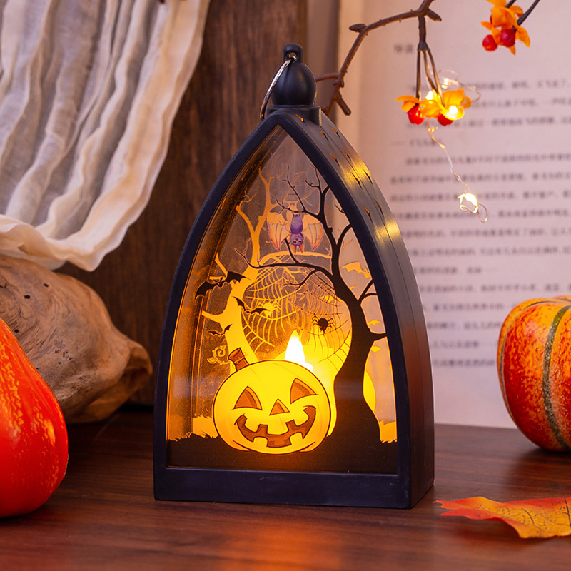 Decorative glowing pumpkin skeleton castle wind lamp perfect for desktop display and atmospheric lighting.