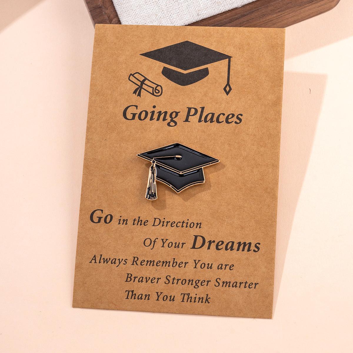 This graduation season gift set includes a handmade retro-style compass bracelet paired with a graduation cap pin, designed to honor and celebrate academic achievements. The bracelet features a vintage compass motif symbolizing guidance and direction, crafted with attention to detail for a timeless look. Complementing the bracelet is a graduation cap pin, an elegant accessory that represents scholarly accomplishment. Both pieces provide a meaningful and stylish way to commemorate academic milestones, making this set an ideal present for graduates.
