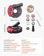 This universal grinding dust shroud is designed for use with 4 to 5-inch angle grinders, providing efficient dust control during surface grinding tasks. It includes six clamping washers and a 5-inch diamond grinding cup wheel, ensuring secure attachment and effective material removal on wood, concrete, and wall surfaces. The shroud features a vacuum connection port to facilitate dust extraction, maintaining a cleaner work environment and enhancing user safety. Constructed from durable materials, it offers reliable performance and compatibility across various angle grinder models.