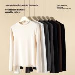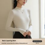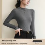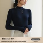 This women’s half turtleneck bottoming shirt is ideal for autumn and winter wear, featuring a contemporary western style. Crafted from soft, breathable fabric, it provides comfortable warmth and a flattering fit. The long sleeves and half turtleneck design make it suitable for layering under jackets or sweaters, enhancing versatility. Its clean lines and minimalist aesthetic offer a chic and sophisticated look suitable for casual or semi-formal occasions.