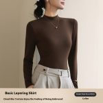 Stylish women’s half turtleneck shirt designed for autumn and winter, perfect for layering with a modern western flair.