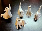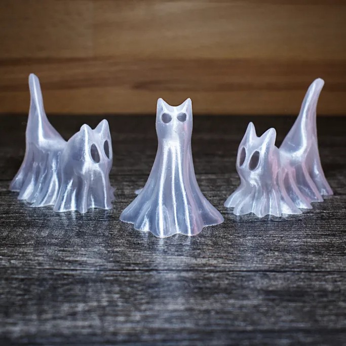 Decorate with a trio of luminous Halloween ghost cat and dog figures, perfect for spooky desktop ambiance.