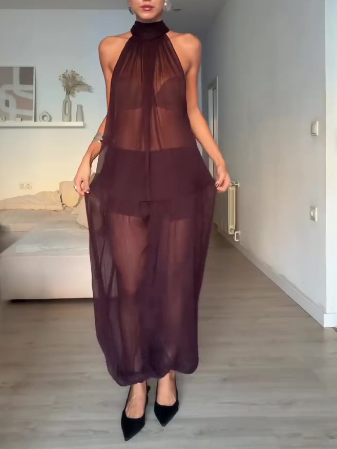 This stylish set features a lightweight halter neck top crafted from soft chiffon fabric, paired with comfortable bloomers. The airy chiffon material provides a delicate and breathable feel, ideal for warm weather. The halter neckline adds a chic touch, while the bloomers offer a relaxed fit for ease of movement. This coordinated ensemble is perfect for casual outings or leisurely activities, combining both elegance and comfort in a single outfit.