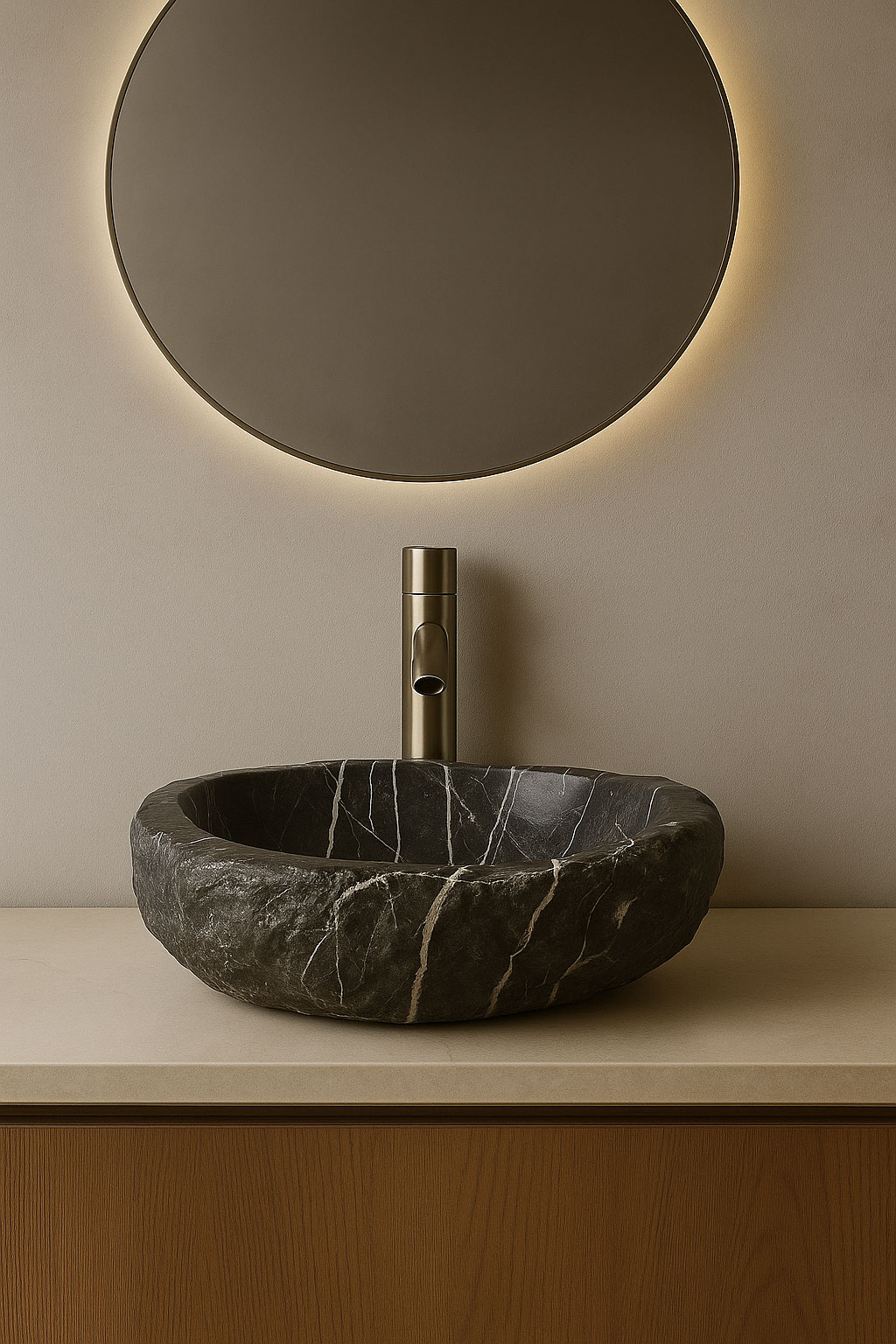 Each basin is entirely handcrafted, transforming ancient stone into a luxurious centerpiece that brings the untamed elegance of nature into modern, refined interiors.