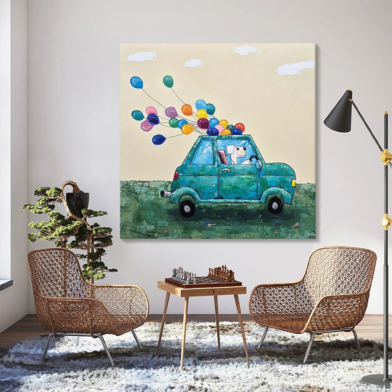Be the first to review “Handmade Oil Painting Canvas Wall Art Decoration Cartoon Drawing Cute Car Dog Balloon For Home Children’s Room Decor Rolled Frameless Unstretched Painting” Cancel reply