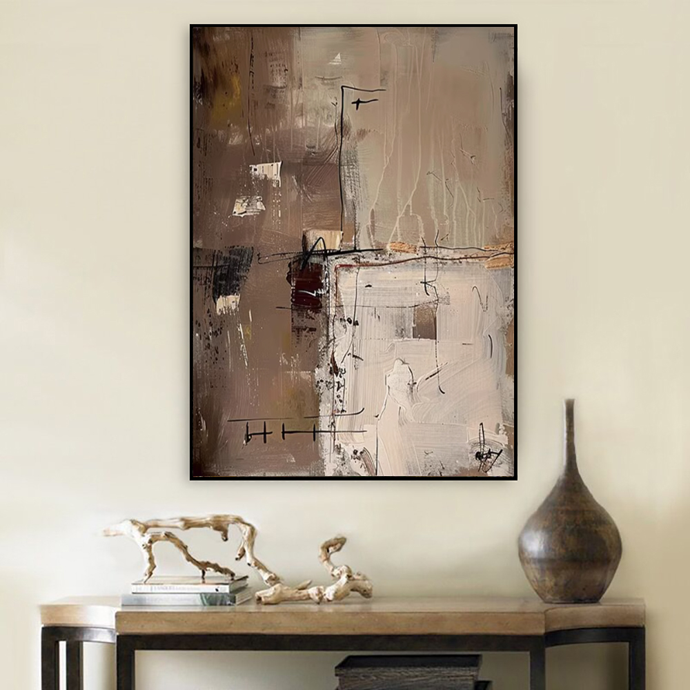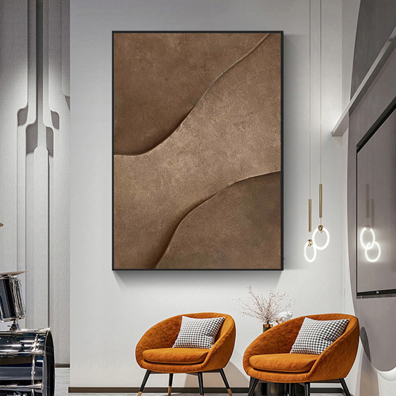 This handmade oil painting features a modern brown textured abstract design on canvas, adding a sophisticated touch to home or living room settings. The artwork is presented rolled and unstretched without a frame, allowing customization during installation. Crafted with oil paints on high-quality canvas, it delivers rich textures and vibrant color depth. Ideal for modern interior decoration, this wall art provides an elegant and contemporary aesthetic enhancement.