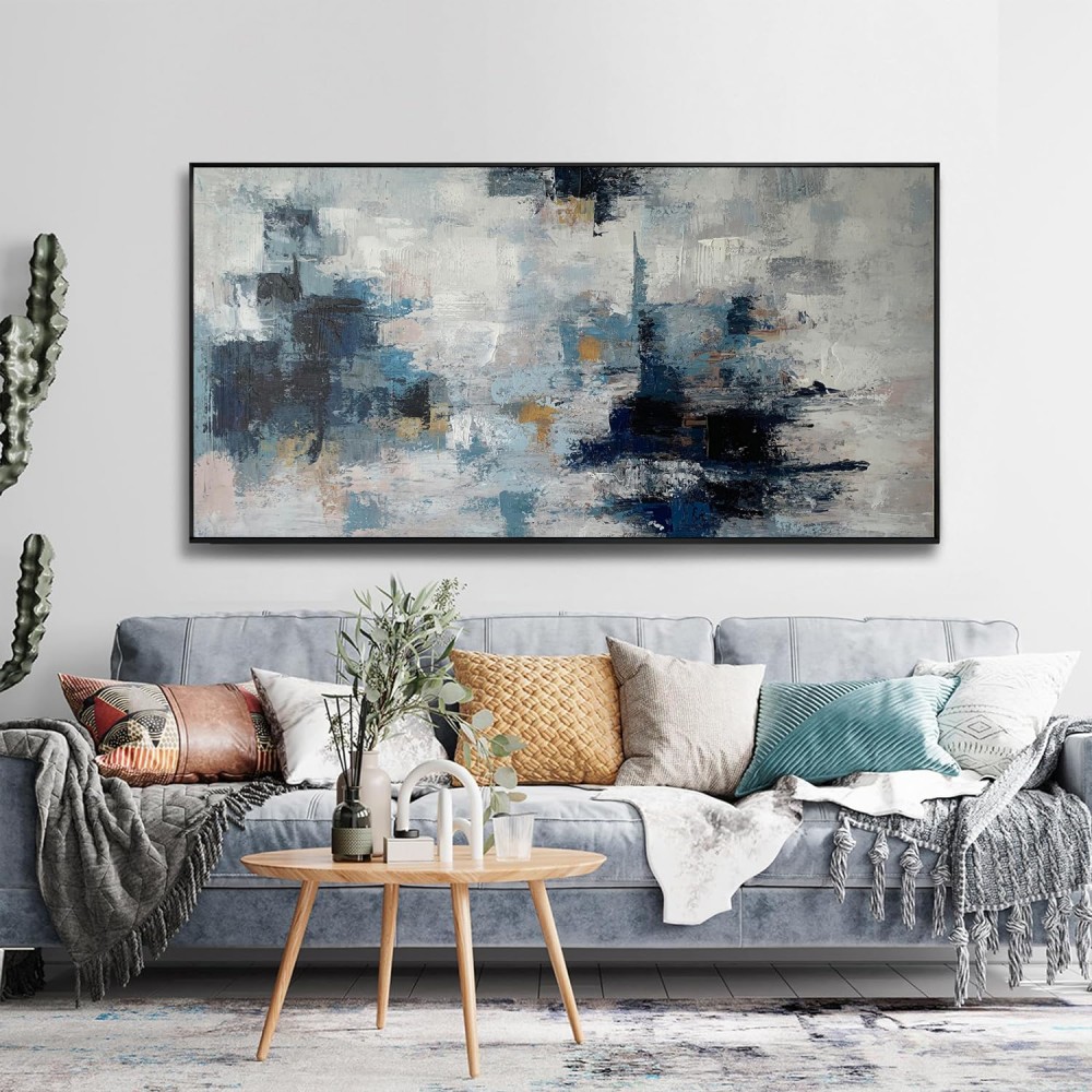 Original handmade modern abstract oil painting on canvas, featuring Nordic style art for elegant living room decoration.