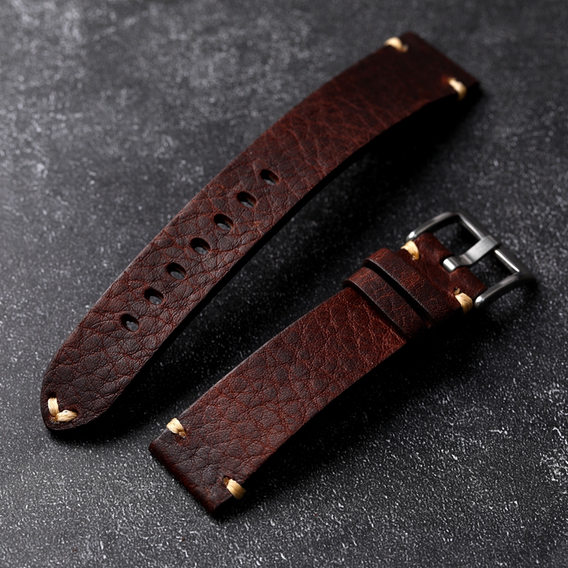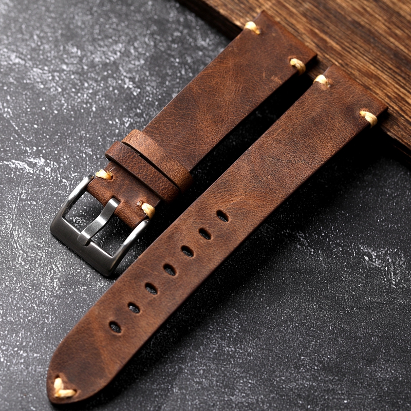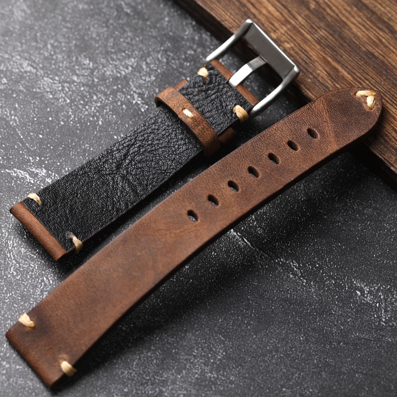 Handmade Soft Distressed Gray-brown Genuine Leather Watch Strap
