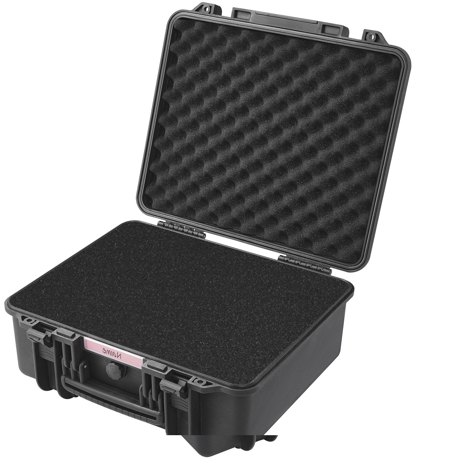 This robust hard pistol case provides secure storage and transport for up to six pistols. Constructed with durable waterproof and dustproof materials, it ensures optimal protection against environmental elements. The interior features pre-cut PU foam designed for precise pistol fitting, reducing movement and preventing damage during transit. Measuring 19.3 by 17.1 by 8.3 inches, the case offers ample space while remaining compact and portable. Equipped with a reliable locking mechanism, it enhances security and peace of mind. The sleek black exterior presents a professional appearance suitable for various settings.