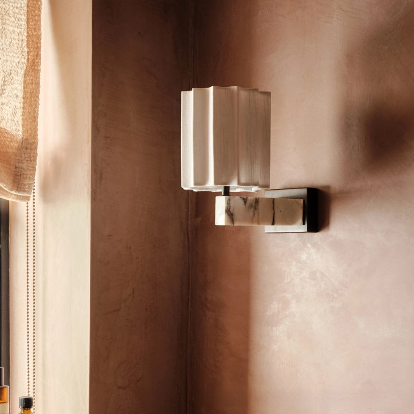 Elegant Danish lamp crafted from marble and travertine, perfect for sophisticated living room décor and ambient lighting.