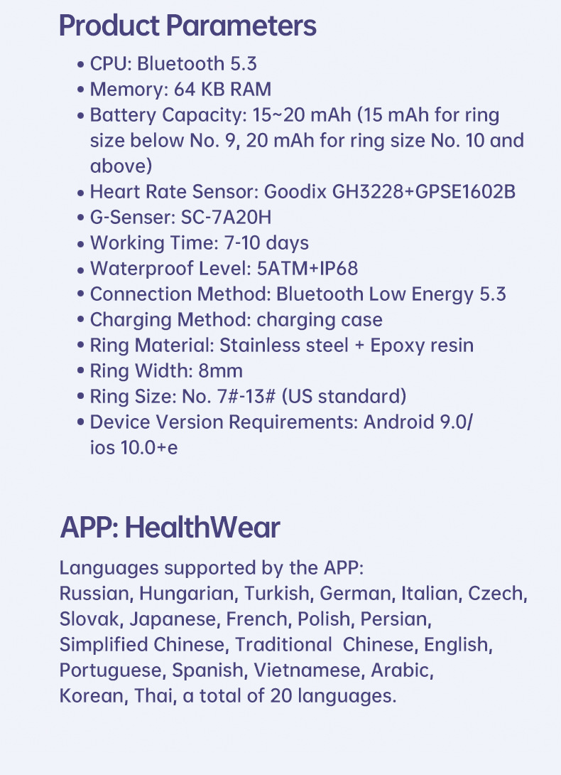 Smart ring * 1+magnetic charging cable * 1+instruction manual * 1+charging compartment * 1