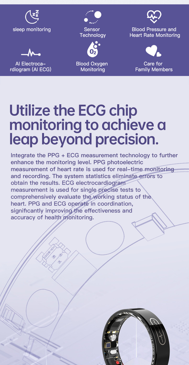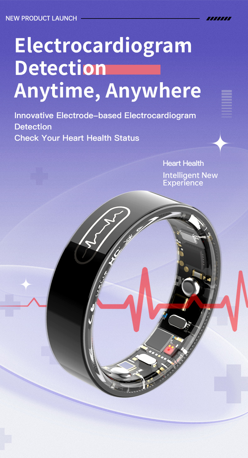 Premium ECG smart ring with low power use, delivering precise health and sleep tracking for continuous well-being monitoring.