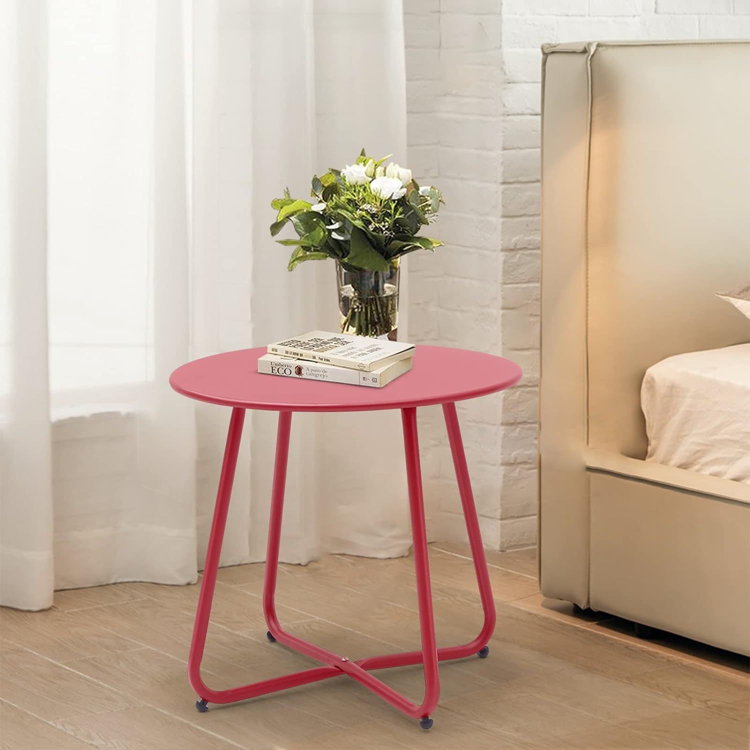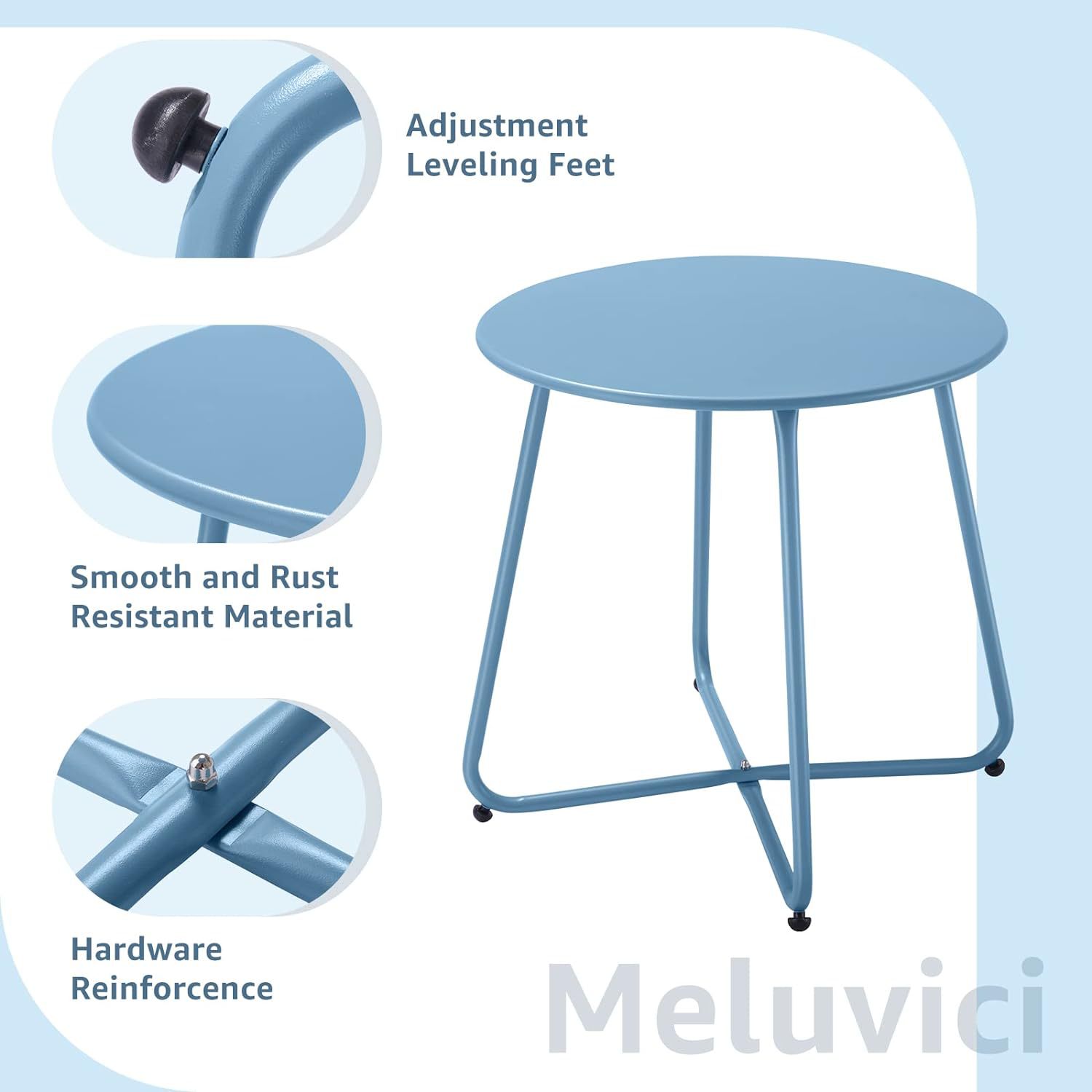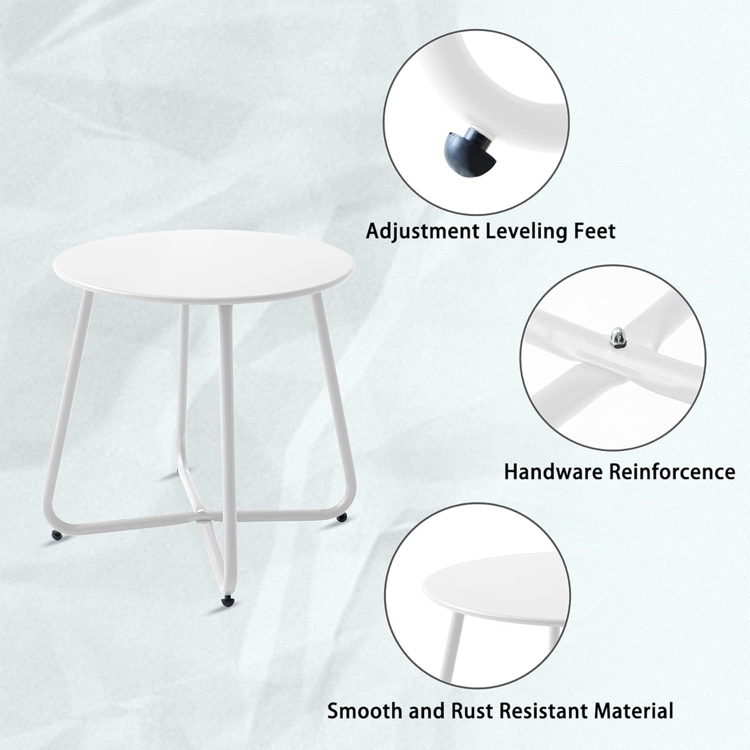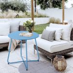 Durable waterproof round metal coffee table, lightweight and portable for outdoor use, combining function and style.