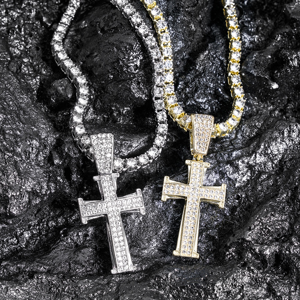Stylish hip-hop cross necklace crafted from durable zinc alloy with personalized design, perfect for unique and bold fashion statements.