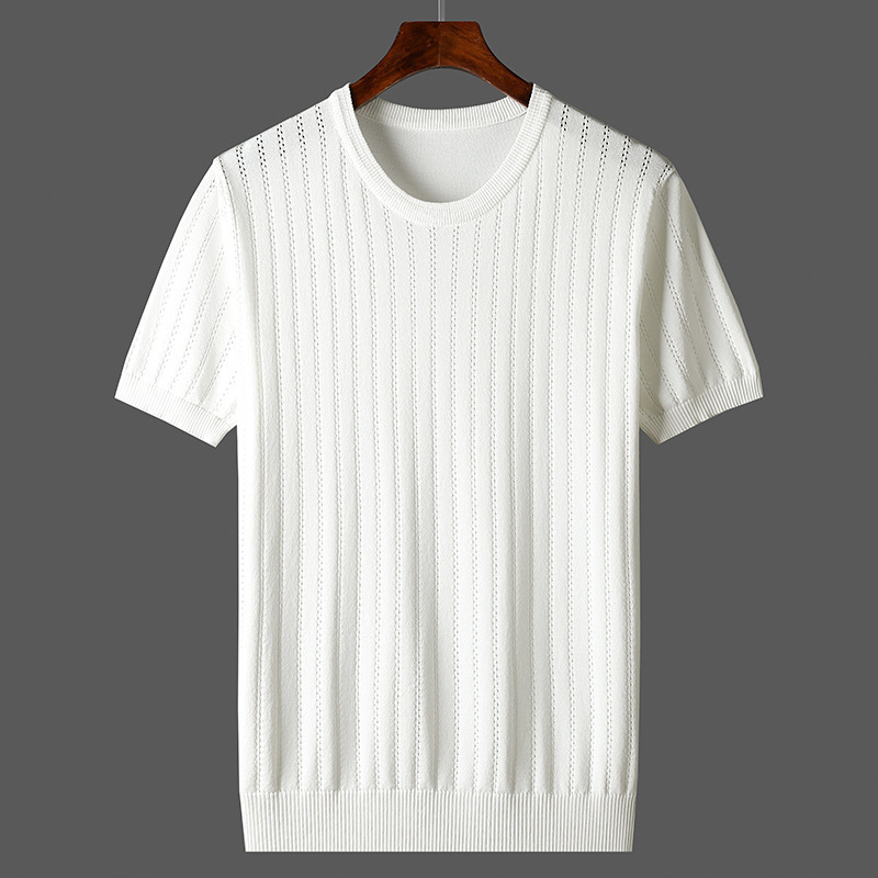 Hollow-out Knitted Casual Men’s Short-sleeved Shirt