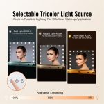 This 23.6-inch Hollywood vanity mirror features high-brightness LED lights designed to provide optimal illumination for makeup and styling. Equipped with USB Type-C charging, the mirror ensures convenient power supply and compatibility with modern devices. Its versatile design allows for flexible installation either on a desktop or mounted on the wall, accommodating different room configurations. The mirror combines functionality with elegance, making it an ideal addition for any dressing area or professional makeup station.