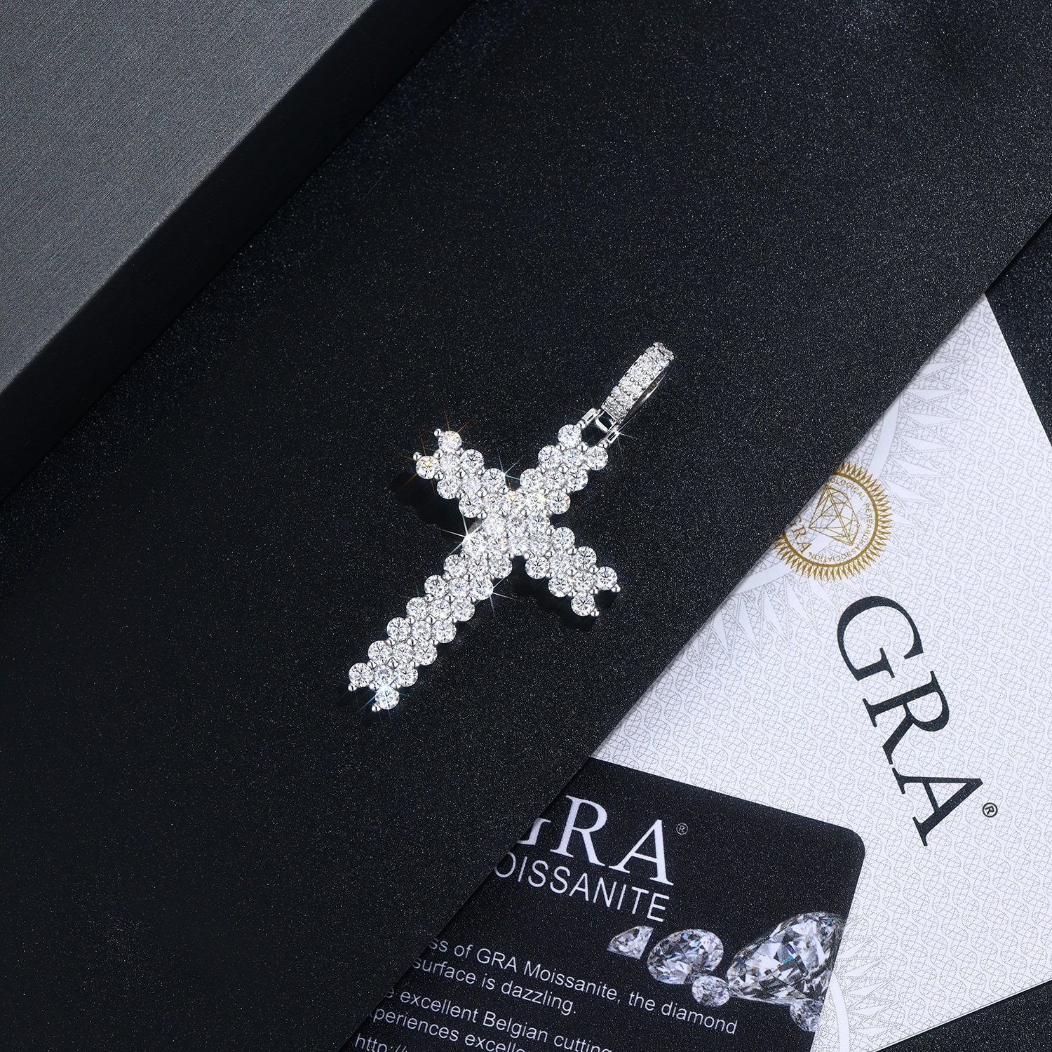 The Holy Light necklace pendant set combines contemporary design with superior craftsmanship. Featuring high-quality Moissanite stones set in S925 sterling silver, each piece is plated with platinum for enhanced durability and a radiant finish. The authenticity of the Moissanite is verifiable using a diamond testing pen, ensuring genuine brilliance and value. This fashionable necklace set offers both elegance and lasting shine, suitable for formal and everyday wear.