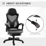 This home office chair is designed for maximum comfort and functionality. It features an adjustable height mechanism to accommodate various desk levels and user preferences. The recliner backrest allows customization of seating angles to reduce fatigue. Integrated retractable footrest provides additional support, ideal for extended periods of sitting. Constructed with durable materials, this chair combines ergonomic design with practical features to enhance productivity and relaxation in any workspace.