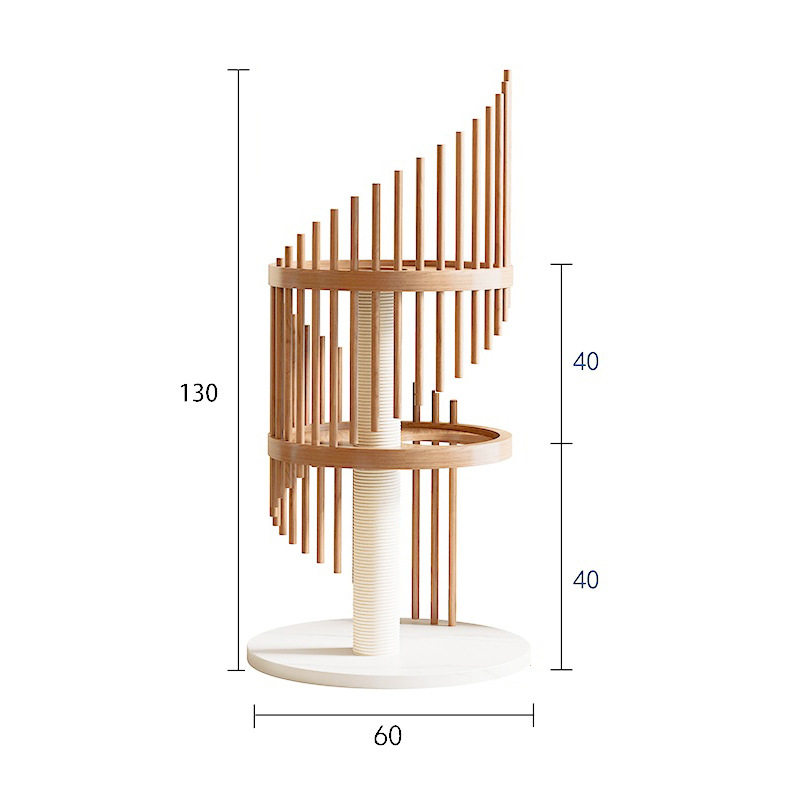 Compact solid wood cat tree designed for home use, combining play and sleep functions in a space-saving design.
