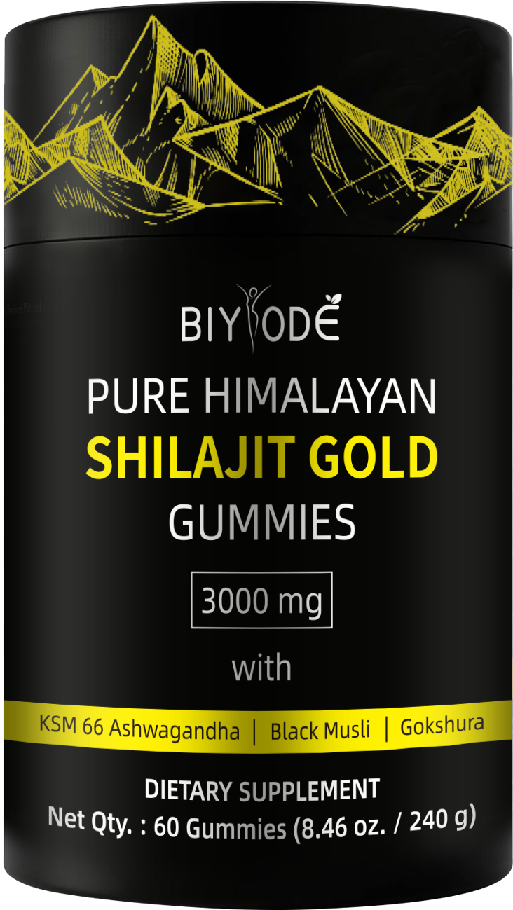 The Gold Shilajit Gummies come in a securely sealed bottle package, providing a convenient and effective way to consume this traditional herbal supplement. These gummies are formulated to support overall health and enhance energy levels through the natural properties of shilajit extract. Each bottle contains a measured quantity of gummies designed for easy intake and optimal absorption. Ideal for individuals seeking a practical alternative to capsules or powders, these gummies offer a pleasant taste and a reliable source of potent nutrients derived from shilajit. This packaging ensures product freshness and convenient storage, making it suitable for daily use.