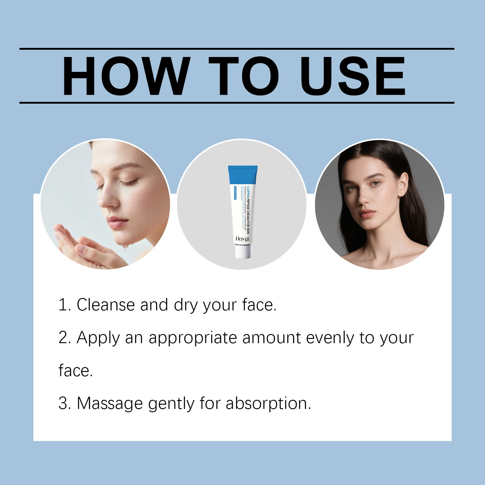 Hoygi moisturizing cream with dense texture and polypeptides enhances skin hydration and softness for gentle daily facial care.