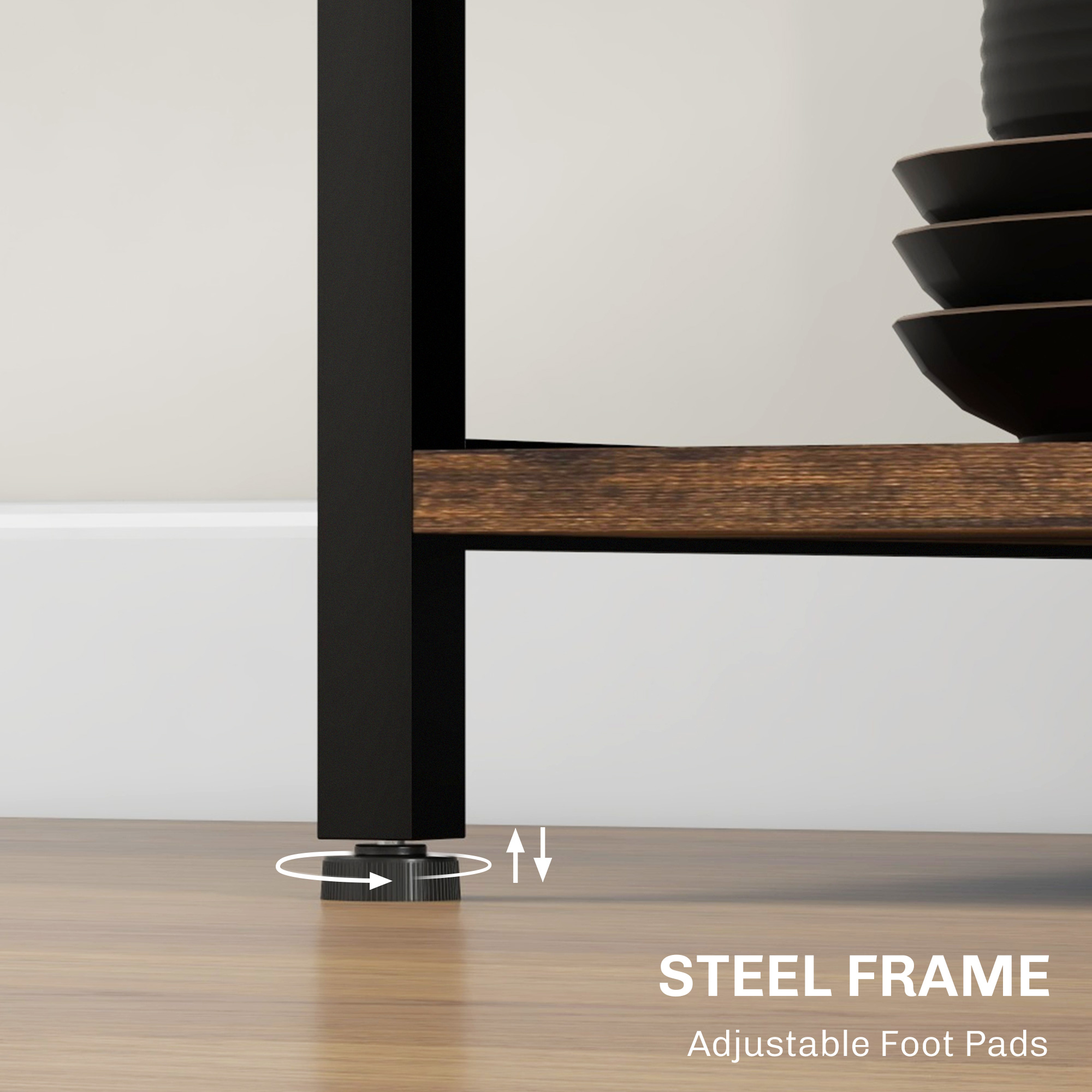 This industrial kitchen bakers rack combines robust construction with practical features, ideal for organizing kitchen essentials. Crafted from high-quality metal with a distressed finish, the rack offers multiple spacious shelves for storing cookware, ingredients, and utensils. Integrated into the design is a built-in charging station equipped with USB ports and electrical outlets, providing convenient power access for devices and appliances. Its sturdy frame ensures durability and stability, while the open shelving design promotes easy access and enhances kitchen aesthetics. Suitable for both residential and commercial kitchens, this bakers rack merges functionality with modern industrial style to optimize space and efficiency.