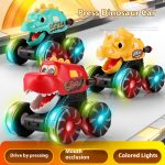 Durable inertial sliding dinosaur toy car with light pressing feature, perfect for children’s imaginative play and motor skills development.