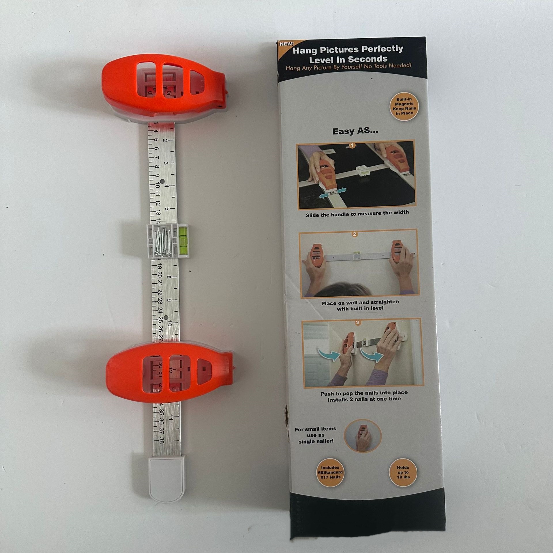 This photo frame hanging tool is designed to facilitate the precise and convenient installation of picture frames. Featuring a built-in horizontal ruler, it ensures accurate alignment on walls, simplifying the hanging process. Crafted from durable materials, the tool offers stability and ease of use for both professional installers and home users. Its compact design allows for effortless handling and storage. Ideal for use on various wall surfaces, this tool enhances efficiency and accuracy when mounting frames.