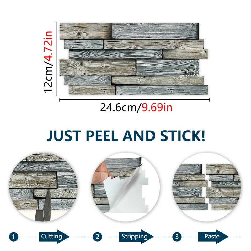 This peel and stick wallpaper features an irregular color matching wood grain design, crafted from durable PVC material. It offers waterproof and oil-resistant properties, making it suitable for kitchen and bathroom walls. Easy to install, this wallpaper enhances interior aesthetics by providing a natural wood look without the hassle of traditional wallpaper application. Its self-adhesive backing ensures secure attachment and convenient hanging decoration, combining practicality with stylish appeal.