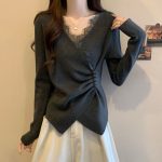 Be the first to review “Irregular Cross-feel Lace Spliced V-neck Long Sleeve T-shirt” Cancel reply