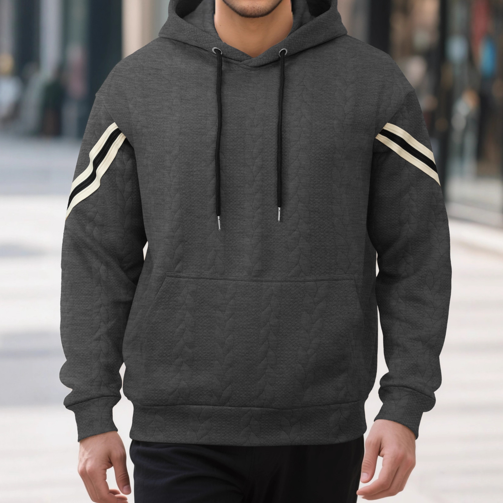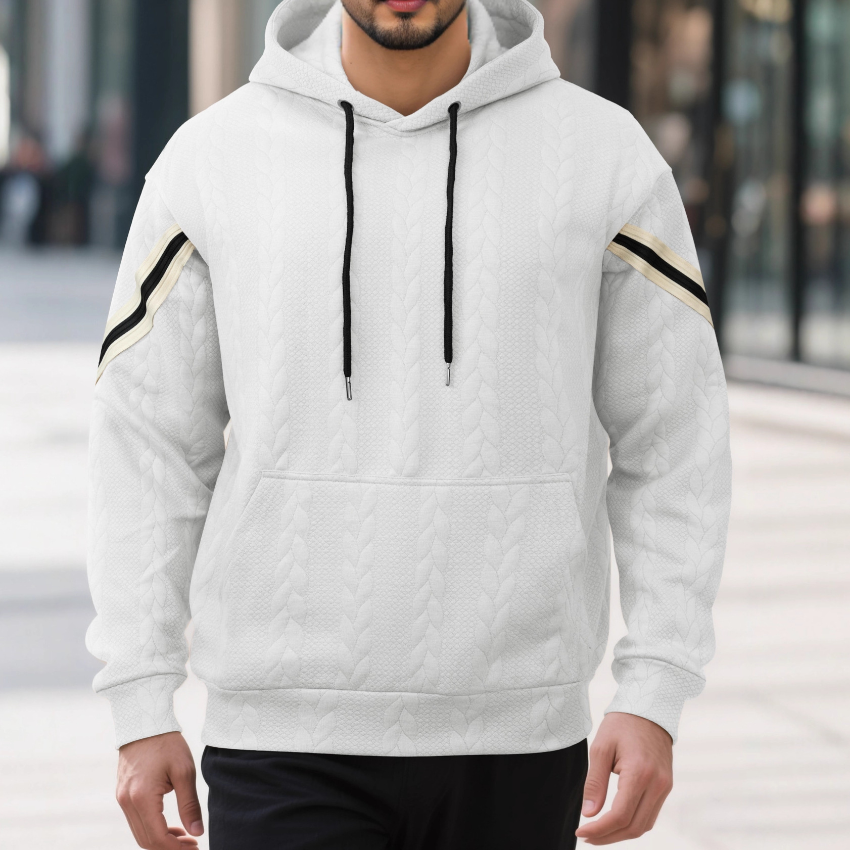 Jacquard-woven Thermal Outdoor Sports Trendy Hooded Hoodie For Men