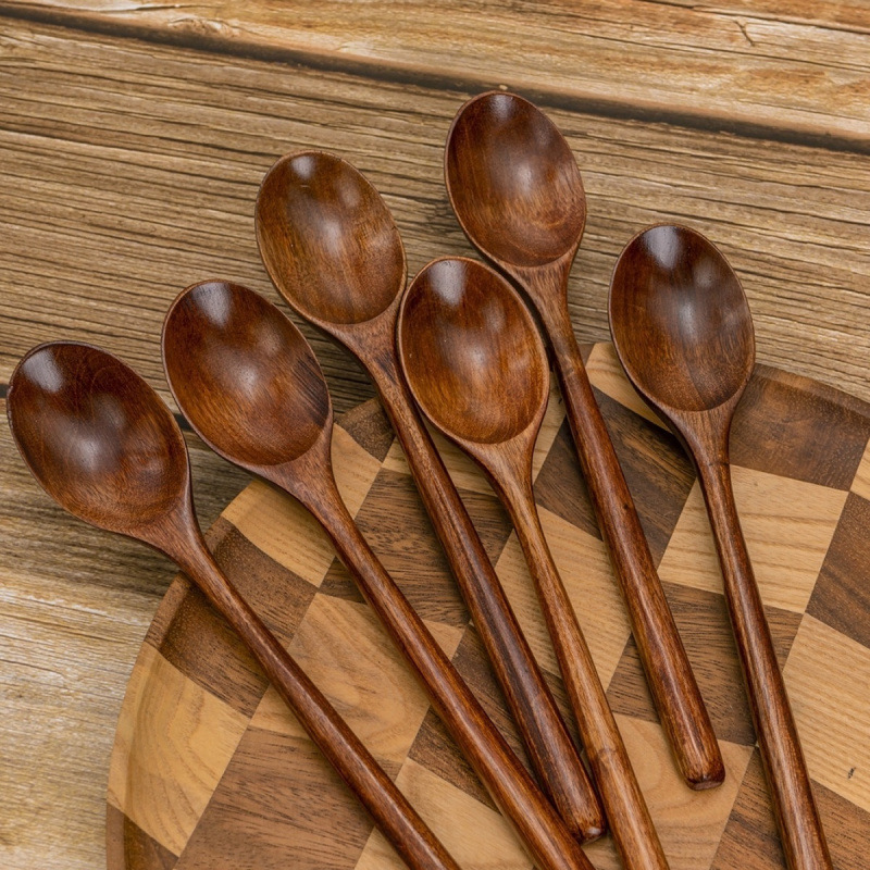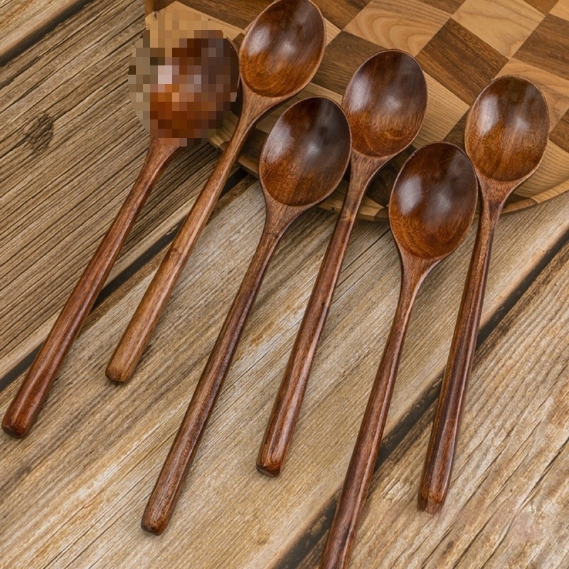 Durable Japanese wooden spoon with an extended handle, ideal for comfortable household cooking and serving.