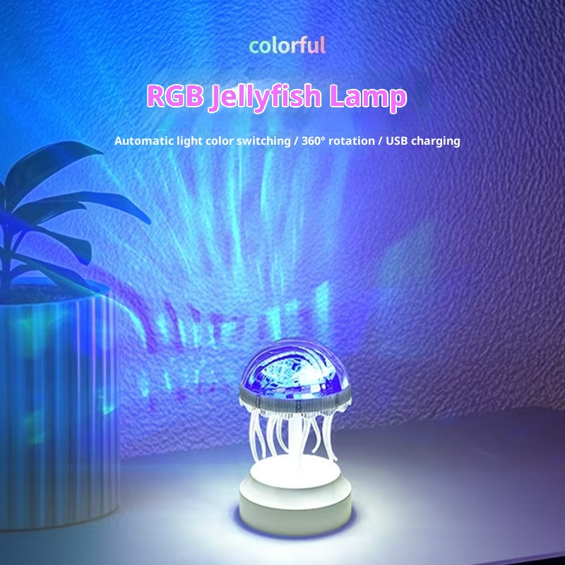 This jellyfish atmosphere night light features a vibrant, colorful design that provides soothing mood lighting. Its creative LED illumination mimics the gentle movement of jellyfish, creating a calming and ambient environment. Suitable for bedrooms, living rooms, or relaxation spaces, it operates quietly and is energy-efficient. Crafted with durable materials, this mood light enhances the atmosphere, promoting a relaxing and tranquil setting.