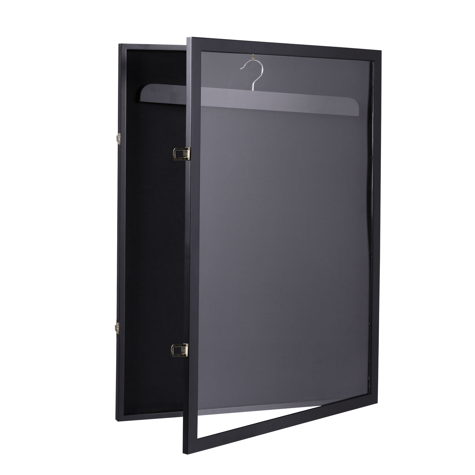 This black jersey display case features a lengthened hanger specifically designed to accommodate sports uniforms and shirts, ensuring an optimal presentation. Crafted from high-quality materials, the case offers durability and protection while maintaining a sleek, professional appearance. Ideal for preserving and showcasing jerseys, this display case protects the garment from dust and damage, making it suitable for collectors, athletes, and sports enthusiasts. The extended hanger ensures the uniform remains properly hung without creasing, enhancing its display value in any setting.
