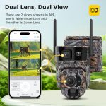 High-definition 6MP 4G solar camera featuring jungle camouflage, 20x optical zoom, ideal for remote surveillance applications.