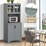 Transform your kitchen with our microwave cabinet with storage hutch. Crafted from quality material with a sleek veneered finish and charming beadboard panels, it brings a cozy, cottage chic vibethat invites comfort and joyful moments. With both glass and beadboard door cabinets plus an open counter, store your essentials and favorite appliances in style—creating a space where every meal feels like a heartfelt celebration at home. Features: – Modern chic with beadboard door panels, framed glass door and antique metal handles – Two door cabinets with shelves give you lots of space to store dishes, pots and pans, dry goods or appliances – Open countertop for storing your microwave oven, toaster, coffee maker – Adjustable shelves allow you to store larger items, without worry if they will fit – Anti-tipping device on the back you can secure to the wall for safety – Place it in your kitchen, living room, dining room for added storage space – Made of P2 grade MDF with melamine surface, sturdy and easy to clean up – Assembly required Specification: – Color: Gray – Material: MDF – Overall Dimension: 28.75″ W x 16.25″ D x 70″ H – Open Storage Area: 27.5″ L x 11.25″ W x 15.75″ H – Upper Cabinet Door (each): 14.25″ L x 15.75″ H – Lower Cabinet Door (each): 14.25″ L x 29.25″ H – Overall Weight Capacity: 66lbs. – Countertop Weight Capacity: 40lbs. – Shelf Weight Capacity: 18lbs. – Item Label: 835-330GY Package Includes: – 1 x Buffet with hutch – 1 x Manual Transform your kitchen with our microwave cabinet with storage hutch. Features: – Modern chic with beadboard door panels, framed glass door and antique metal handles – Two door cabinets with shelves give you lots of space to store dishes, pots and pans, dry goods or appliances – Open countertop for storing your microwave oven, toaster, coffee maker – Adjustable shelves allow you to store larger items, without worry if they will fit – Anti-tipping device on the back you can secure to the wall for safety – Place it in your kitchen, living room, dining room for added storage space – Made of P2 grade MDF with melamine surface, sturdy and easy to clean up – Assembly required Specification: – Color: White – Material: MDF – Overall Dimension: 28.75″ W x 16.25″ D x 70″ H – Open Storage Area: 27.5″ L x 11.25″ W x 15.75″ H – Upper Cabinet Door (each): 14.25″ L x 15.75″ H – Lower Cabinet Door (each): 14.25″ L x 29.25″ H – Overall Weight Capacity: 66lbs. – Item Label: 835-330WT Package Includes: – 1 x Buffet with hutch – 1 x Manual Create more storage space with this elegant kitchen cabinet. This modern buffet with hutch has two cabinets, one spacious open storage space, and a wide drawer. You can use this pantry effectively to keep your things well organized. The upper glass framed door cabinet can be used to put your bottles and jars. The open storage area is suitable to place a microwave or coffee machine and the drawer can be used to store your napkins and utensils. The lower cabinet is suitable for your large items and you can also remove the shelf to create larger storage space. Features: – Ample storage space with two-door cabinets, one drawer, and one open storage area – Elegant design fits your modern kitchen, dining room, or living room well – Ideal for the storage of kitchenware, dinnerware bottles, and ovens – Cabinet with an adjustable shelf better meet your needs – Sturdy frame made of premium MDF and with a painted surface, easy to clean – Anti-toppling design adds extra security – Assembly required Specification: – Color: White – Material: MDF – Overall Dimension: 27″ W x 15.75″ D x 64.5″ H – Upper Cabinet Door: 11.25″ L x 14.75″ H – Open Storage Space: 22.75″ L x 15.75″ D x 15.75″ H – Drawer Dimension Inside: 20.75″ L x 13.25″ D x 3.25″ H – Lower Cabinet Door: 11.25″ L x 19.75″ H – Weight Capacity: 77lbs (Overall), 11lbs (Shelf), 11lbs (Drawer) – Item Label: 835-343V80WT Do you love to be in the kitchen but are running out of space? This HOMCOM coffee bar cabinet can help bring your kitchen from cluttered to organized in no time. No more stacking pots and pans on top of each other and now you have to move them all to get to that soup pot in the back, this pantry storage cabinet will give you the space to know where everything is at and get to it easily. Spend more time cooking and entertaining with this HOMCOM kitchen hutch cabinet. Features: – Modern chic with beadboard door panels, framed glass door and silver metal handles – Two door cabinets with shelves give you lots of space to store dishes, pots and pans, dry goods or appliances – Open countertop for storing your microwave oven, toaster, coffee maker – A esay slide-out drawer allows you to put away napkins, towels and silverware – Adjustable shelves allow you to store larger items, without worry if they will fit – Anti-tipping device on the back you can secure to the wall for safety – Place it in your kitchen, living room, dining room for added storage space – Made of P2 grade MDF with painted surface, sturdy and easy to clean up – Assembly required Specification: – Color: Black – Material: MDF – Overall Dimension: 27″ W x 15.75″ D x 64.5″ H – Upper Cabinet Door: 11.25″ L x 14.75″ H – Open Storage Space: 22.75″ L x 15.75″ D x 15.75″ H – Drawer Dimension Inside: 20.75″ L x 13.25″ D x 3.25″ H – Lower Cabinet Door: 11.25″ L x 19.75″ H – Overall Weight Capacity: 77 lbs – Shelf and Drawer Weight Capacity: 11 lbs – Item Label: 835-343V80BK Package Includes: – 1 x Kitchen Cabinet – 1 x Manual Do you love to be in the kitchen but are running out of space? Features: – Modern chic with beadboard door panels, framed glass door and silver metal handles – Two door cabinets with shelves give you lots of space to store dishes, pots and pans, dry goods or ap