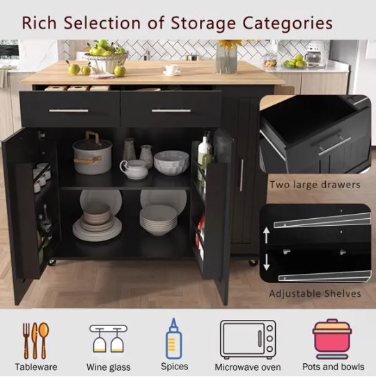 Be the first to review “Kitchen Island With Drop Leaf, Kitchen Storage Cart With 3 Tier Pull Out Cabinet Organizer, Internal Storage Rack, Rolling Kitchen Cart On Wheels With Towel Rack, 2 Drawers, For Kitchen, Black” Cancel reply