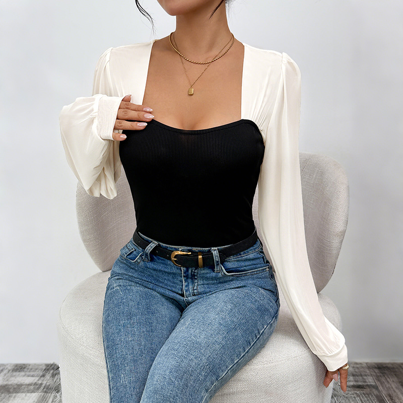 Knitted Long-sleeved Slim And Elegant Square Neck Jumpsuit For Women