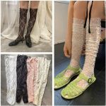Elegant Korean-inspired stretch lace over-the-knee stockings offering a comfortable, stylish fit for versatile fashion wear.