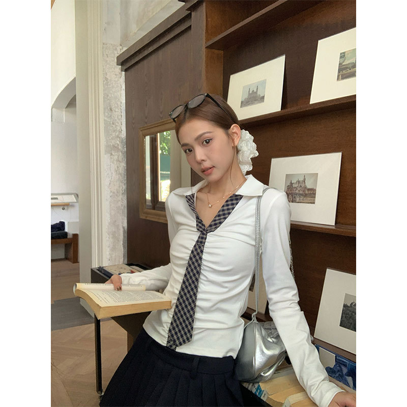 Stylish Korean slim-fit long sleeve T-shirt for women, designed to provide a slimming effect with comfortable stretch fabric.