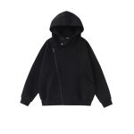 Elegant Korean style gray coat with double zipper, perfect for women’s autumn and winter wear.
