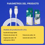 The UWINN L41 Lightning Cable features a 2-meter length and supports up to 6A current for fast and efficient charging. Constructed with USB 3.0 technology, it enables rapid data transmission and stable connectivity. The cable’s white exterior provides a clean, professional look while ensuring durability for long-term use. Compatible with a wide range of Lightning-enabled devices, this cable combines speed and reliability for daily charging and syncing needs.