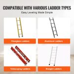 This 23.4-inch ladder leveler is constructed from robust steel, designed to support loads up to 550lbs. It functions as a ladder leveling tool and stair stabilizer, ensuring safety and balance on uneven ground and stairways. The device features a pitch hopper for secure ladder positioning and includes storage capability for convenient handling. Compatible with various extension ladders, this accessory facilitates stable use on all surface types, enhancing operational safety and efficiency.