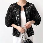 This women’s blouse showcases a refined design with lantern sleeves and a classic round neckline. Crafted from delicate lace fabric, it offers a lightweight and breathable feel. The intricate lace detailing adds a touch of sophistication suitable for both formal events and everyday wear. Designed to provide comfort alongside style, the blouse presents a flattering silhouette enhanced by its unique sleeve shape and textured patterning.