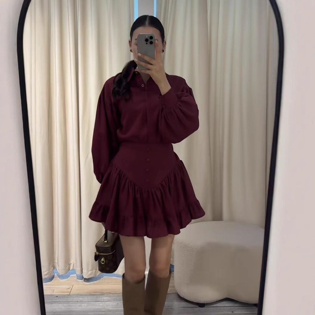 Be the first to review “Lantern Sleeve Shirt Ruffled Skirt Suit Women” Cancel reply