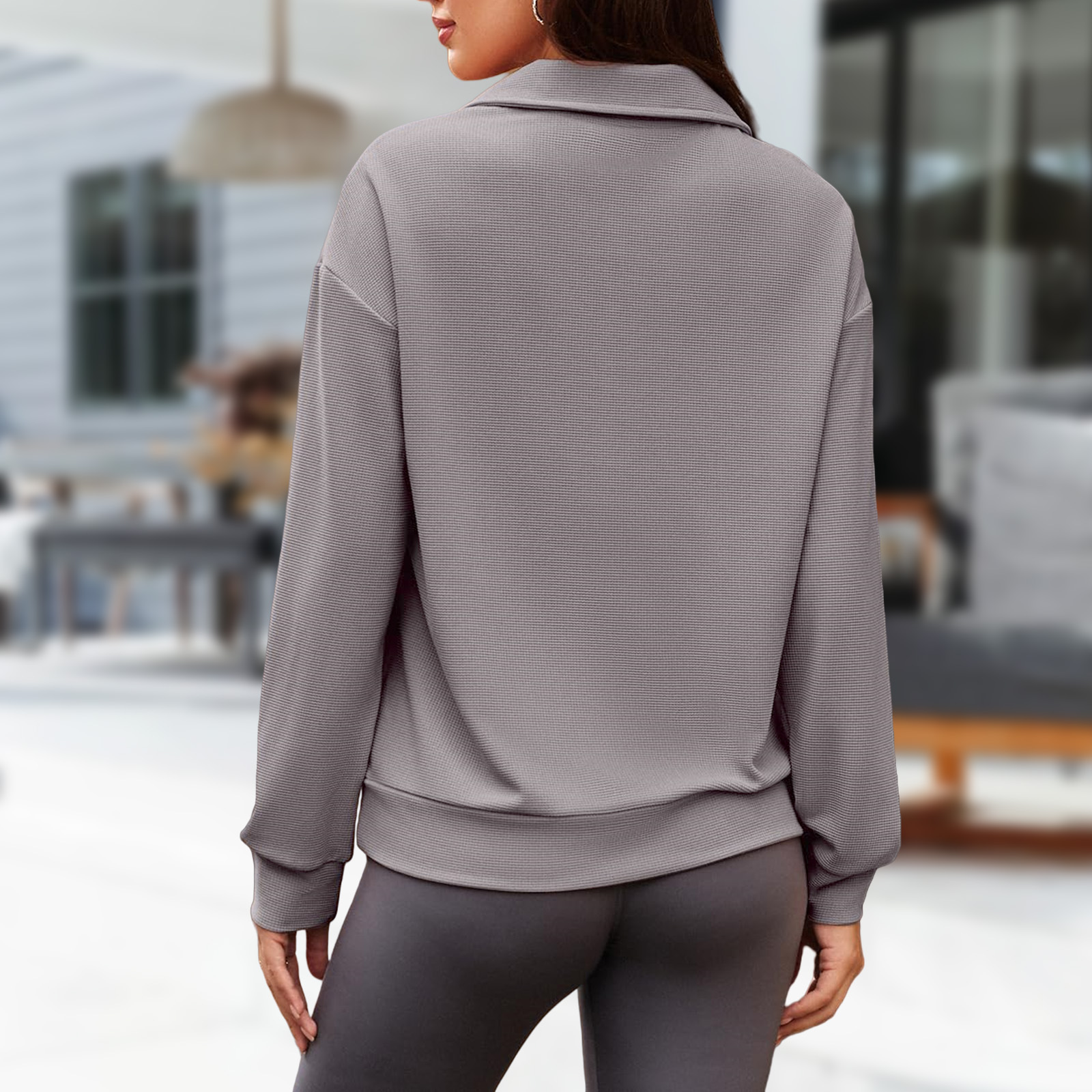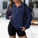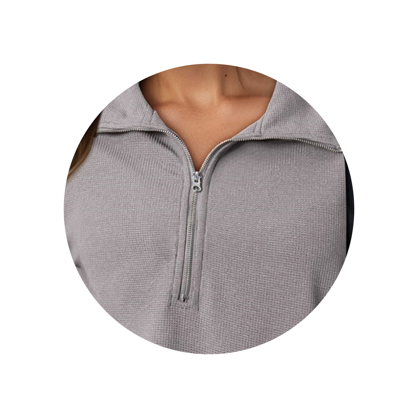 Stylish women’s loose lapel sweater with a front zipper for comfortable layering and casual wear.