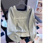 Be the first to review “Large Size One-shoulder Cold-shoulder Striped Stitching False Two-piece Sweaters Women’s Autumn New” Cancel reply