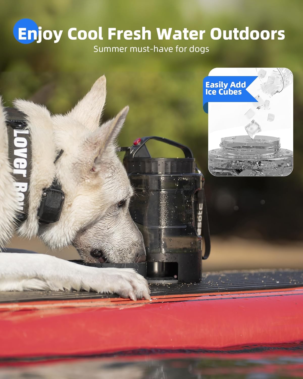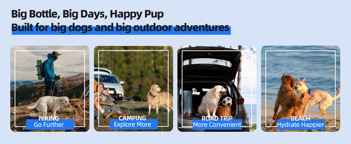 Durable Lassot portable pull-out water bowl for dogs with large capacity. Ideal for camping, hiking, beach trips, road trips, and park walks.