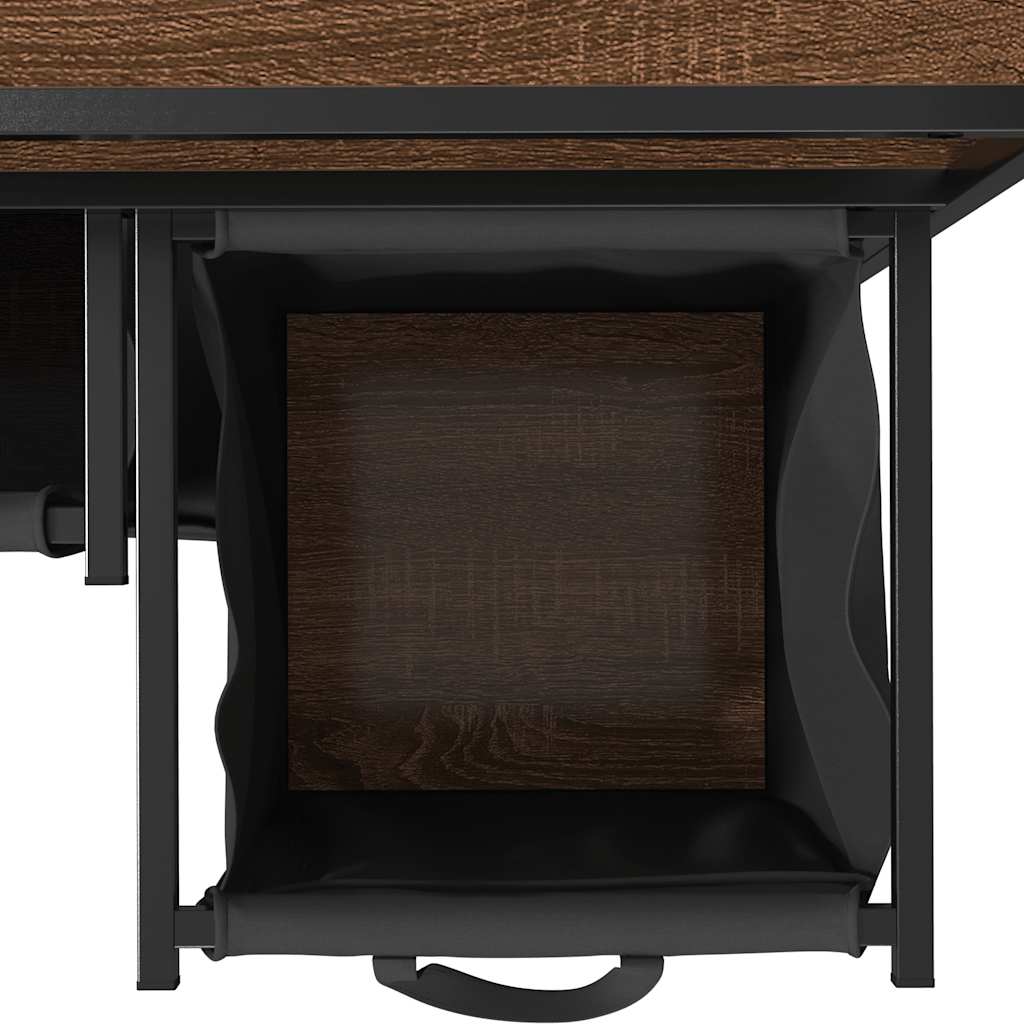 Frame color: Black Shelf color: Brown oak Laundry bag color: Black Frame material: Steel Shelf material: Engineered wood Laundry bag material: Fabric (100% polyester) Overall dimensions: 67 x 33 x 97 cm (W x D x H), 99 x 33 x 97 cm (W x D x H) Laundry bag dimensions (each): 29.5 x 29.5 x 52.5 cm (W x D x H) Maximum total load capacity: 40 kg Load capacity per shelf: 20 kg Max. load capacity per laundry bag: 5 kg Assembly required: Yes Scope of delivery: